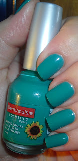 O verniz de hoje foi enviado pela marca Dermacélsia um verde único na minha colecção, que depende muito o tom da cor dependo da luz.